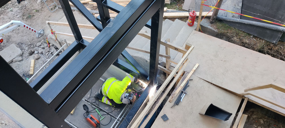 Oulunkylässä toteutimme onnistuneesti hissin jälkiasennusprojektin, jossa rakennettiin täysin uusi hissikuilu kerrostalon ulkopuolelle. Kuilu toteutettiin teräsrakenteisena, ja se liitettiin porrashuoneeseen esteettömän kulun mahdollistamiseksi.
